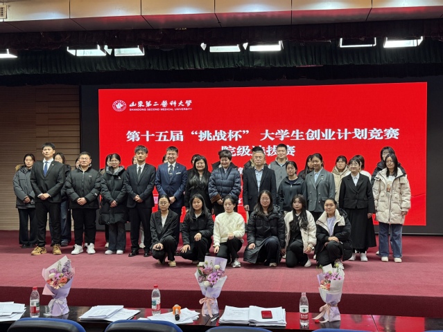 1215日,山东第二医科大学2025年“挑战杯”大学生创业计划竞赛院级选拔赛在图书馆演播厅正式开展。三位专家评委出席评审现场,为参赛项目进行专业点评。
